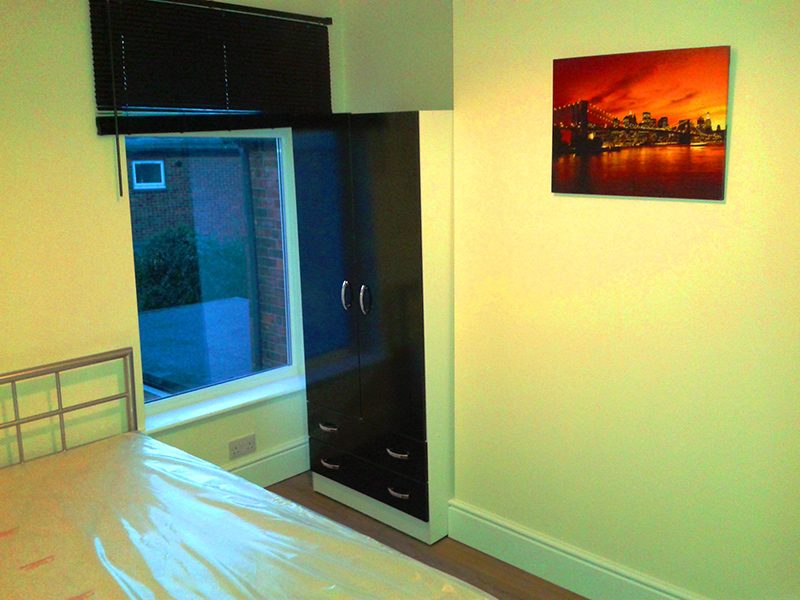 The Lounge has two comfortable brown leather sofas with coffee table and hosts the Wireless WI-FI hub that provides superfast broadband throughout the property. The main feature in the lounge is a 40″ flat screen TV that is wall mounted for maximum effect. The bathroom has a large quad shower with Electric power shower which means instant hot water on demand at the touch of a button. It has a Humidity controlled extractor fan to minimise the chances of damp in the bathroom which is a common issue in many student properties. The property is completed with an enclosed concreted yard area and Bike shed perfect for summer BBQ’s and relaxing in privacy.