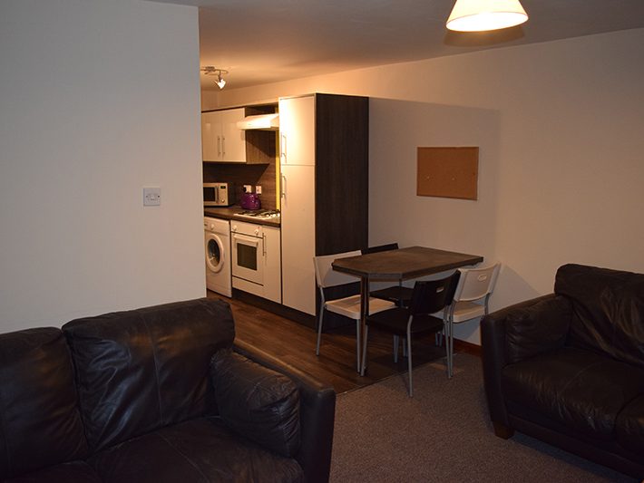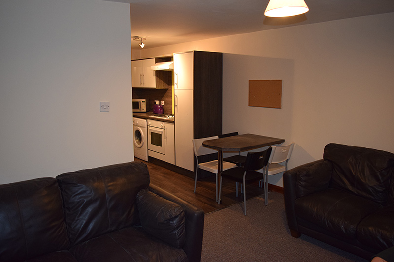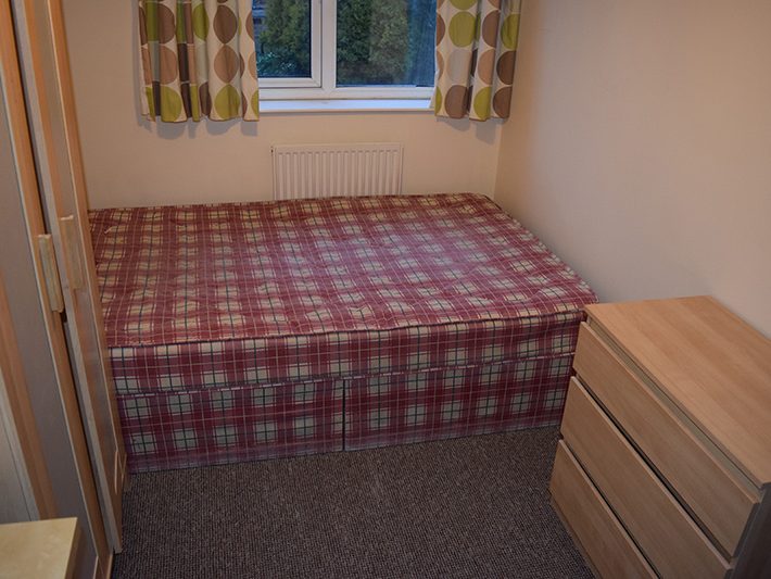 The Lounge is open plan leading from the kitchen comprising off comfortable sofas with a coffee table and hosts the Wireless WI-FI hub that provides superfast broadband throughout the property. There is a breakfast bar and chairs that create a great focal point in the room and make for a great social atmosphere. The main feature in the lounge is a 40″ flat screen TV that is wall mounted for maximum effect. The bathroom has a large bath/shower with electric power shower which means instant hot water on demand at the touch of a button. It has a humidity controlled extractor fan to minimise the chances of damp in the bathroom which is a common issue in many student properties. A separate WC downstairs is a great addition to the house providing added comfort. The property is completed with an enclosed garden area perfect for summer BBQ’s and relaxing in privacy. In addition there are private parking spaces available opposite the property in a quiet and secluded area.